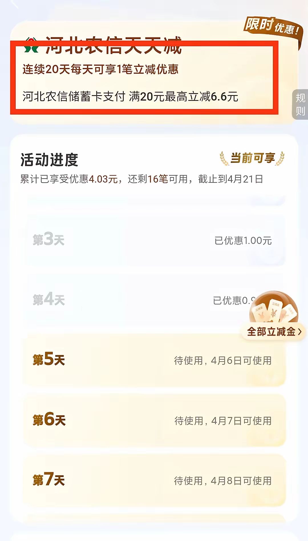 4月份支付宝的立减金改变方式了